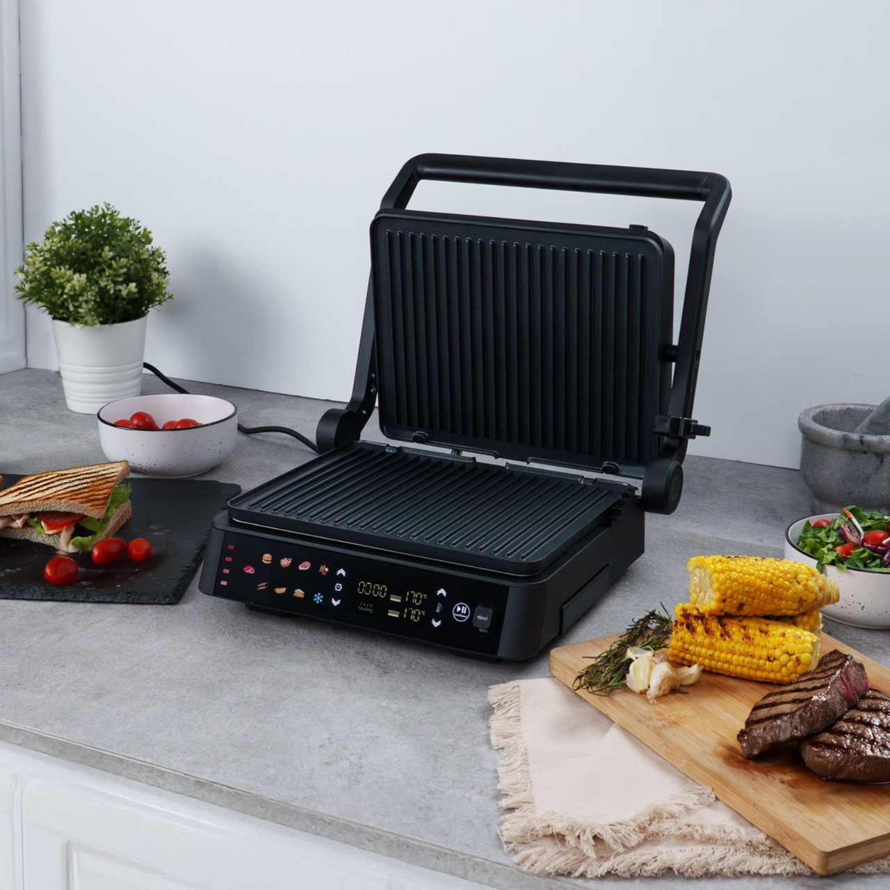 پختن غذای عالی باید ساده باشد. Arshia Smart Grill Pro انتخاب جدید شما برای تهیه غذاهای خوشمزه و کاملاً کبابی درست روی میزتان است. این دستگاه که برای سازگاری با هر دستور غذایی طراحی شده است، به راحتی از یک دستگاه کوچک به یک گریل بزرگ و باز تبدیل میشود و آن را به همراهی ایدهآل برای همه چیز، از شامهای سریع در طول هفته گرفته تا مهمانیهای ویژه آخر هفته، تبدیل میکند.
