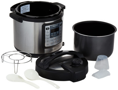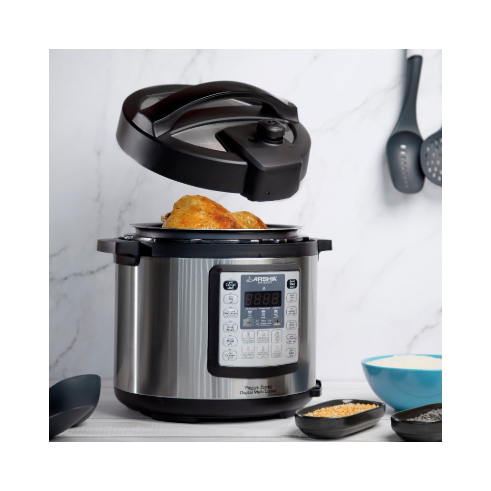 دستگاه زودپز برقی دیجیتال 1000 وات 6 لیتر مشکی عرشیا مدل EP118-2372 یکی از کاربردی ترین زودپز برقی های دیجیتالی می باشد که تا به حال تولید شده است. این دستگاه با قابلیت هایی که دارد میتواند به شما کمک کند تا بهترین غذاها را طبخ کنید و لذتی فراموش نشدنی را در کنار خانواده تان تجربه نمایید. همچنین با این دستگاه میتوانید انواع غذاها مانند برنج و یا گوشت و ماهی را طبخ کنید به صورتی که ویتامین های آنها از بین نرود و بتوانید به منبعی عالی از ویتامین ها نیز دست یابید به طوری که تاثیرات بسیار زیاد و مثبتی برای شما خواهد داشت .