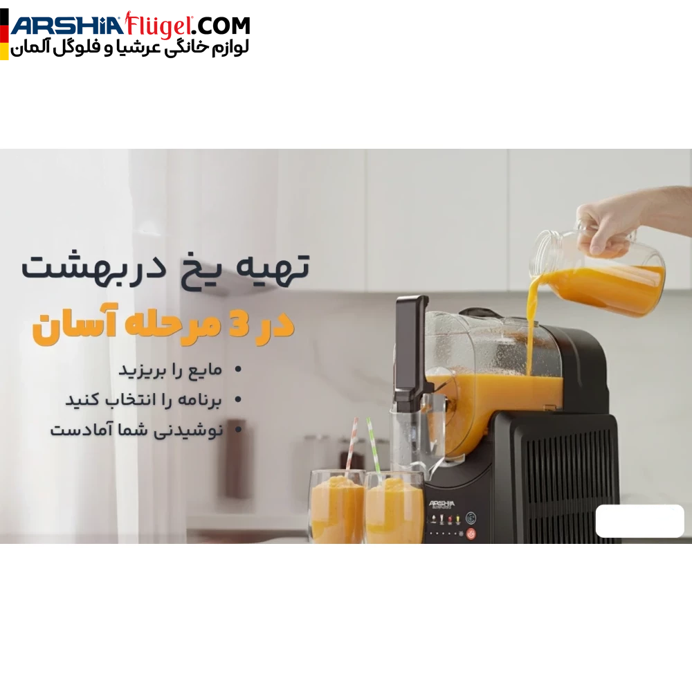 دستگاه یخ در بهشت ساز عرشیا با ۳ مرحله آسان برای تهیه نوشیدنیهای یخی، کاربری سادهای دارد. شما تنها نیاز دارید که مایع را داخل دستگاه بریزید، برنامه دلخواه را انتخاب کنید و سپس منتظر باشید تا نوشیدنی آماده شود. این فرآیند سریع و بدون دردسر است و به شما این امکان را میدهد که بدون پیچیدگی، اسلشیها و میلکشیکهای خوشمزه را آماده کنید.